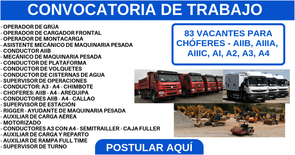 Si quieres conocer otros artículos parecidos a CONVOCATORIA DE TRABAJO EN TRANSBER S.A.C puedes visitar la categoría 🧰 Empleos.