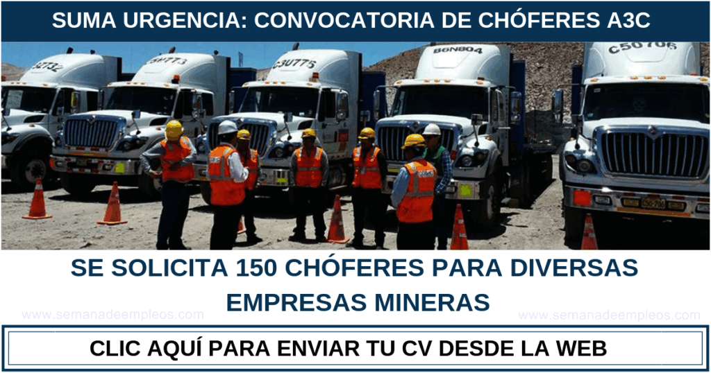 CONVOCATORIA DE TRABAJO PARA CONDUCTORES A3C – SECTOR MINERÍA
