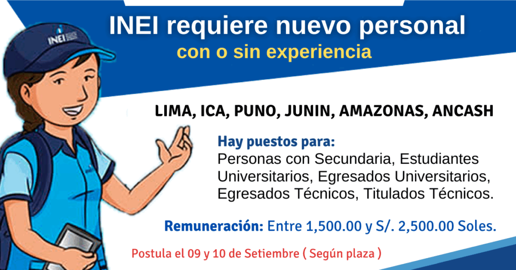 Si quieres conocer otros artículos parecidos a Convocatoria De Trabajo Para INEI: Requiere Supervisores, Asistentes, Operarios, Conductores, Otros puedes visitar la categoría 🧰 Empleos.