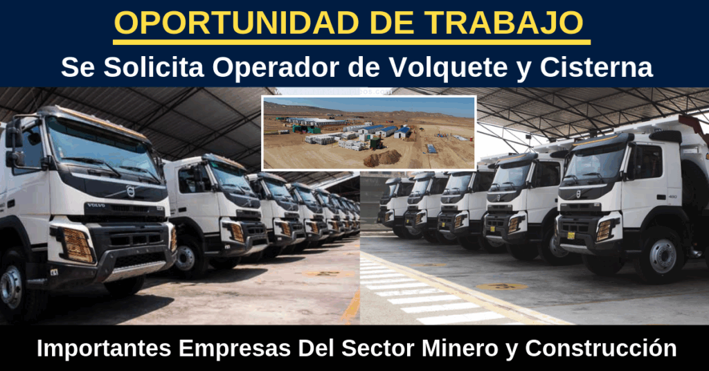 Si estas interesado en ser parte de alguna de las empresas que ofrece vacantes para operador de volquete o cisterna puedes ver mas información de como enviar tu CV desde la web oficial, dale en Aplicar aquí.
