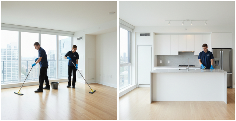 - Pulido de pisos, lavado profundo de baños y desinfección de cocinas para garantizar higiene completa.