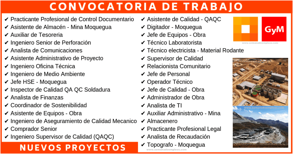Vacantes vigentes para trabajar en GRAÑA Y MONTERO S.A.A son los siguientes: