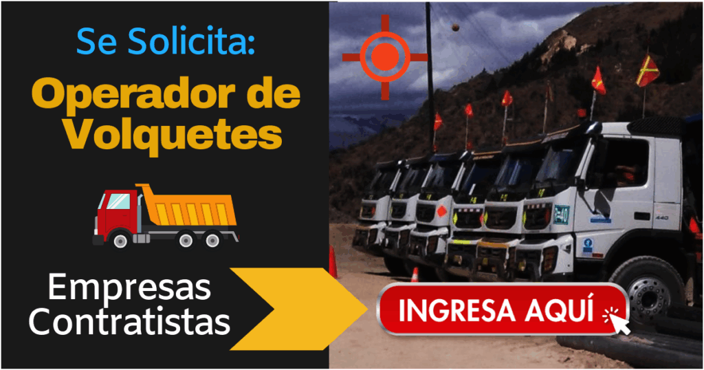 Hoy contamos con diferentes compañías y contratistas que andan en la búsqueda de operadores de volquete, ya sea con experiencia amplia o mínima experiencia en empresas de construcción civil y minera. Las vacantes son para diferentes ciudades del Peru, cada postulante decide a que lugar postular.